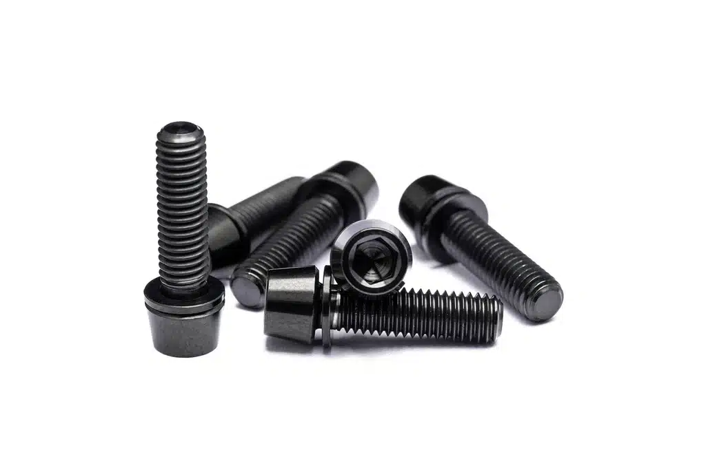 | SPEC/INSTAL | 6qty Bolts (Tapered) 6qty Washers 5mm Allen Head Black Oxide coated Stainless Steel Bolts Apply anti-seize or blue loctite to threads. Anti-seize is also recommended on the washer or back of head where it sets into the stem. Torque all bolts to 6Nm |